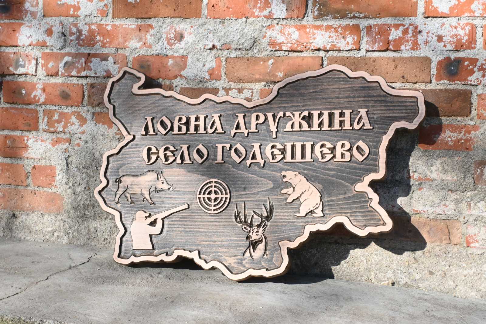 Дървена табела от Бук във форма картата на България.